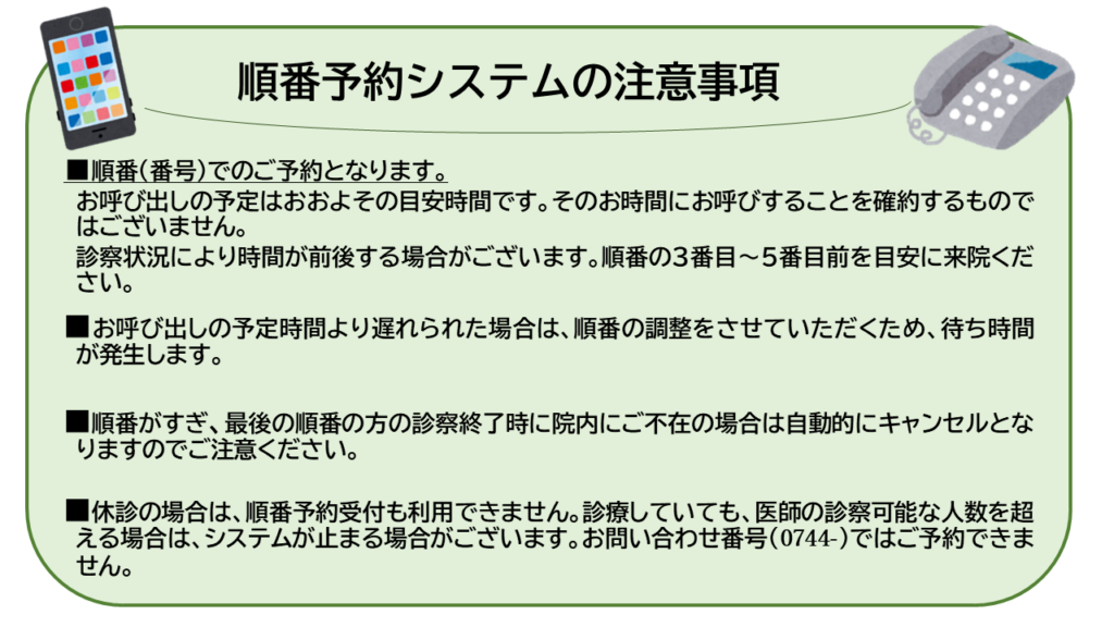最後に、当院からの順番予約システムに関するお願い(注意事項)です。